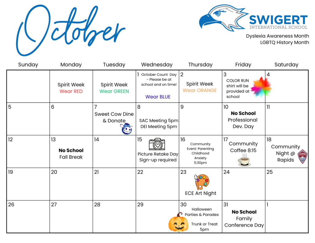 If you’d like to add your school-wide or grade-wide event to the calendar please email us the details.