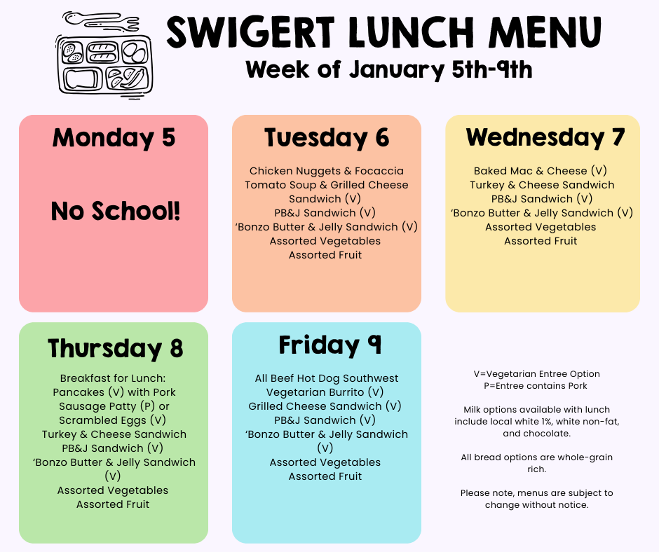 They can also be viewed on schoolcafe.com. They have an app as well. Here is a the January lunch calendar: